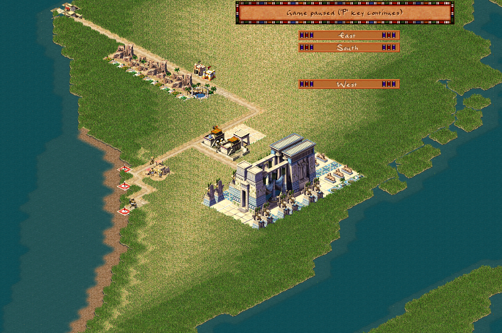 In the way from previous games, in Pharaoh, the npcs actually move between destinations instead of aimlessly wandering around before. When the population reaches thousands, things get incredibly complex, so in order to maintain a steady fps rate, the number of active objects per frame was reduced from 5000 in Caesar to 2000 in Pharaoh. According to Simon's words, even in Caesar, there were significant challenges with implementing the core logic within the limited resources of the processor and memory - the game had to run on just 32MB RAM.