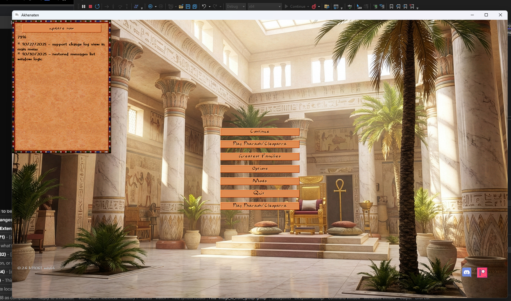 Two years ago, I stumbled upon the Ozymandias project, which aims to recreate the Pharaoh engine, just like it was done for Caesar. During that time, I mostly assisted the project with advice, sometimes with code, and occasionally delved into complex mechanics. However, recently, the original author abandoned it, and I've decided to continue the development on my own.